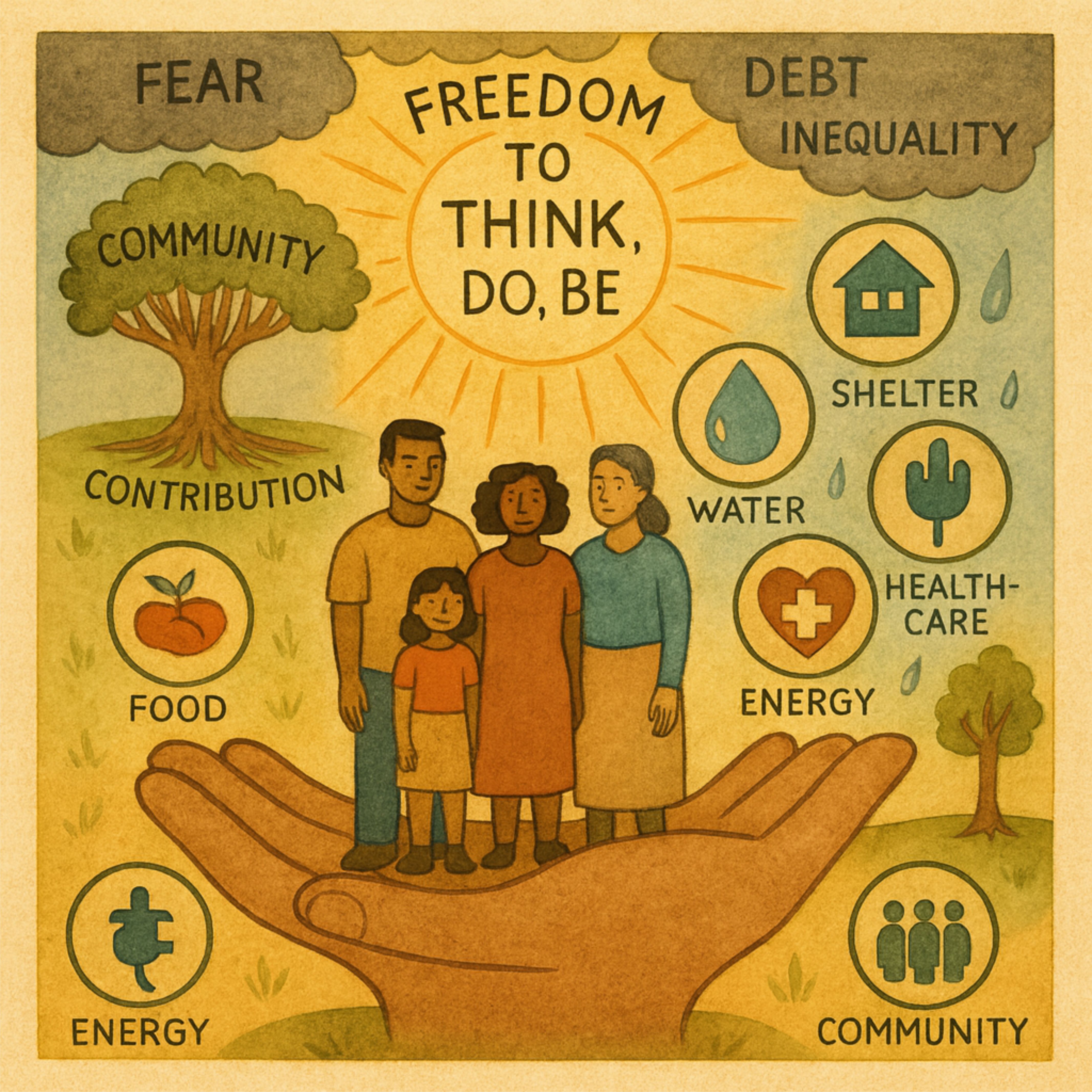 True freedom is more than the absence of physical restraint – it means having the security to think, do, and be without fear or dependence on money.